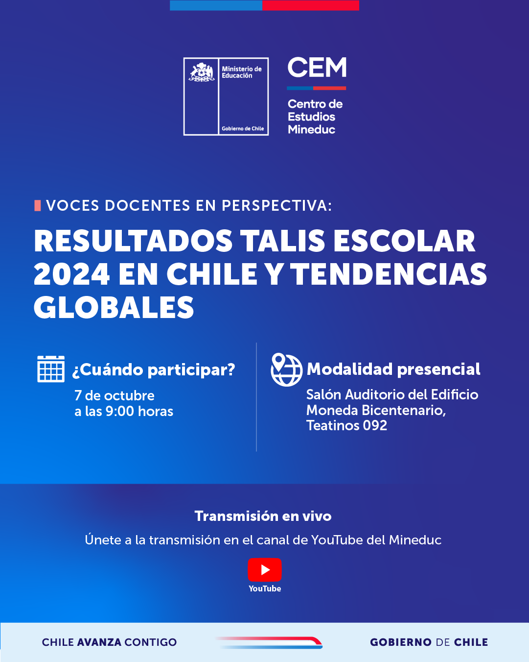 Se contará con la participación de Rodrigo Castañeda Valle, analista de políticas educativas de la OCDE, quien entregará una perspectiva internacional comparada en relación con los hallazgos del estudio y los resultados de nuestro país.
